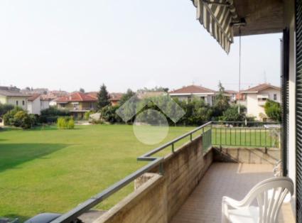 La soluzione al piano primo rialzato, con ingresso indipendente, ci accoglie in un'ampia zona giorno, composta da un luminoso soggiorno con accesso diretto al balcone e dalla cucina abitabile.