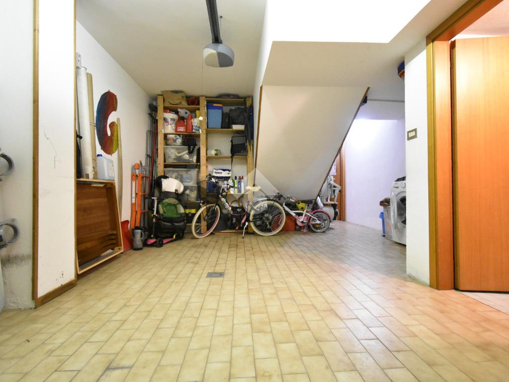Tramite la scala interna si raggiunge il garage al piano seminterrato, con un bagno di servizio ed una tavernetta privata, dotata di camino che crea un'atmosfera calda e conviviale, perfetta per serate in compagnia, e con accesso diretto alla corte privata pavimentata sul retro.