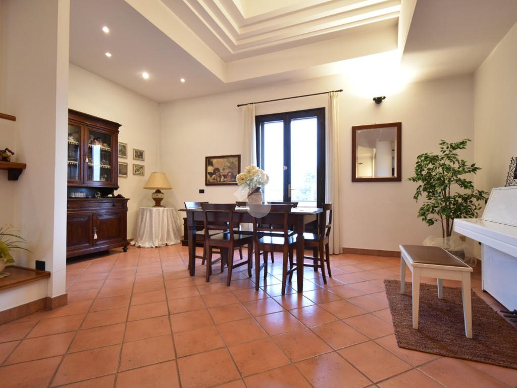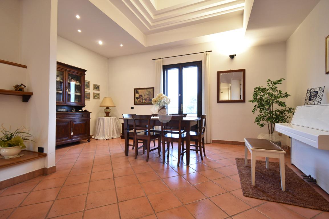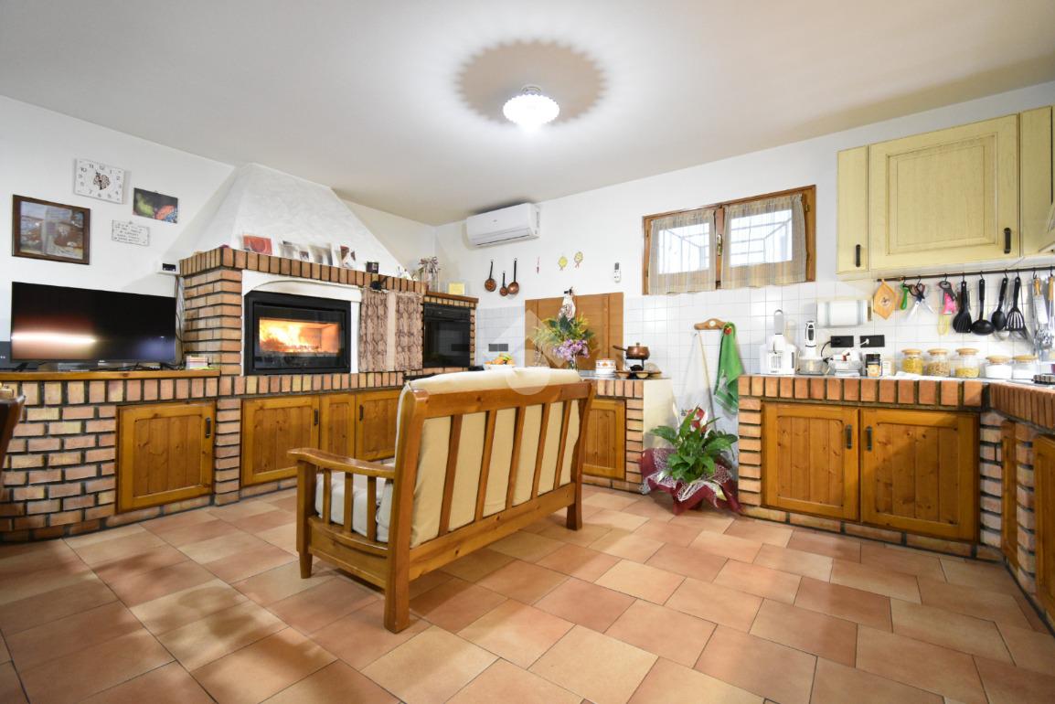 Scendendo al piano seminterrato troviamo un' accogliente tavernetta con camino e cucina, perfetta per cene e pranzi conviviali o momenti di relax. Il piano dispone inoltre di un bagno finestrato con doccia, un ripostiglio, una cantina ed una lavanderia. A completare il livello un garage triplo di circa 50 mq, facilmente accessibile anche tramite rampa esterna.